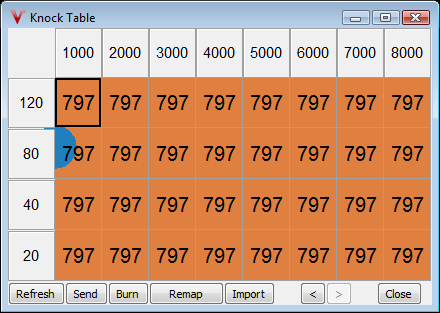 all applications. Entering a value of 797 disables knock control in this area, useful for overrun/low map or very low rpm conditions.