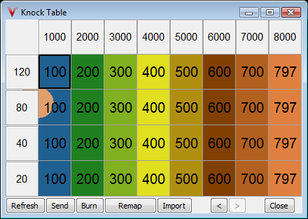 Now that the meaning of the knock noise table is clear it is required to setup the knock noise table with measured values for your engine, procedure will be explained in a few simple steps: