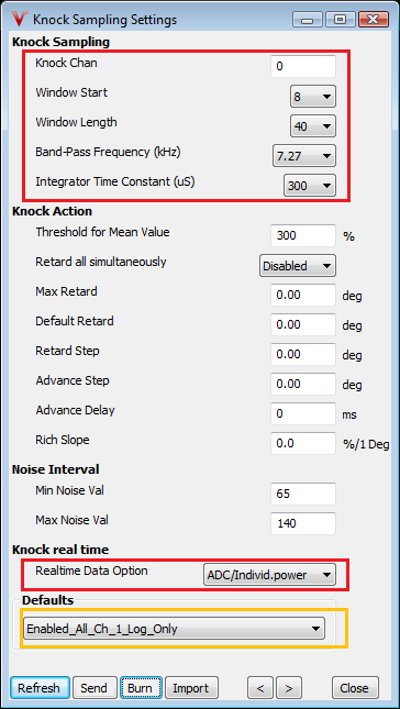 In this section we will be focusing on the settings of the advanced knock control system which are related to the sampling of the knock data. Below you find an example of the