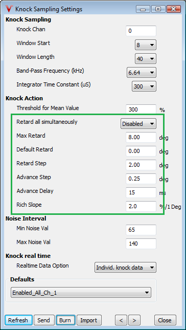 In this section we will be focusing on the settings of the advanced knock control system which are related to knock action, e.g. what happens when knock is detected.